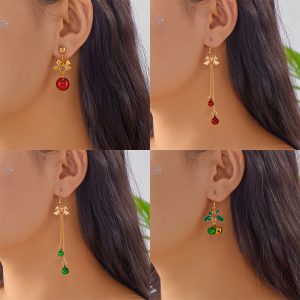 Christmas Earrings Red and Green Bell Earrings Simple Tassel Fashion Alloy Earrings