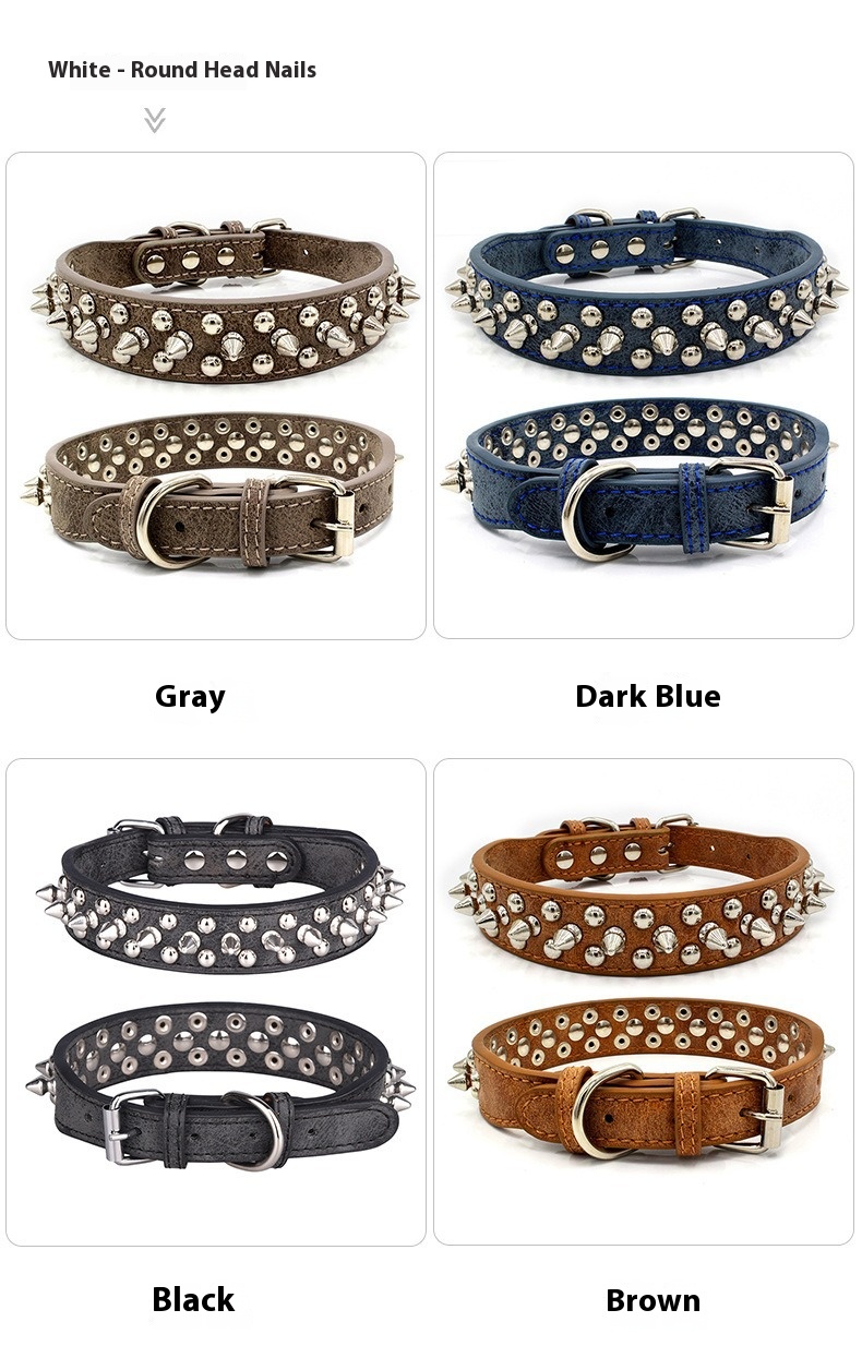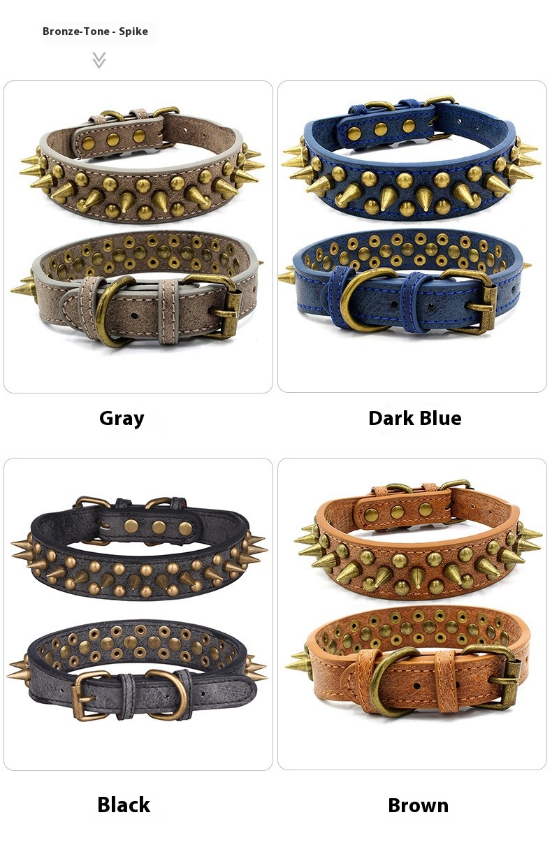 Cross border pet collar retro anti bite rivet punk style dog collar sofa leather medium large dog traction collar