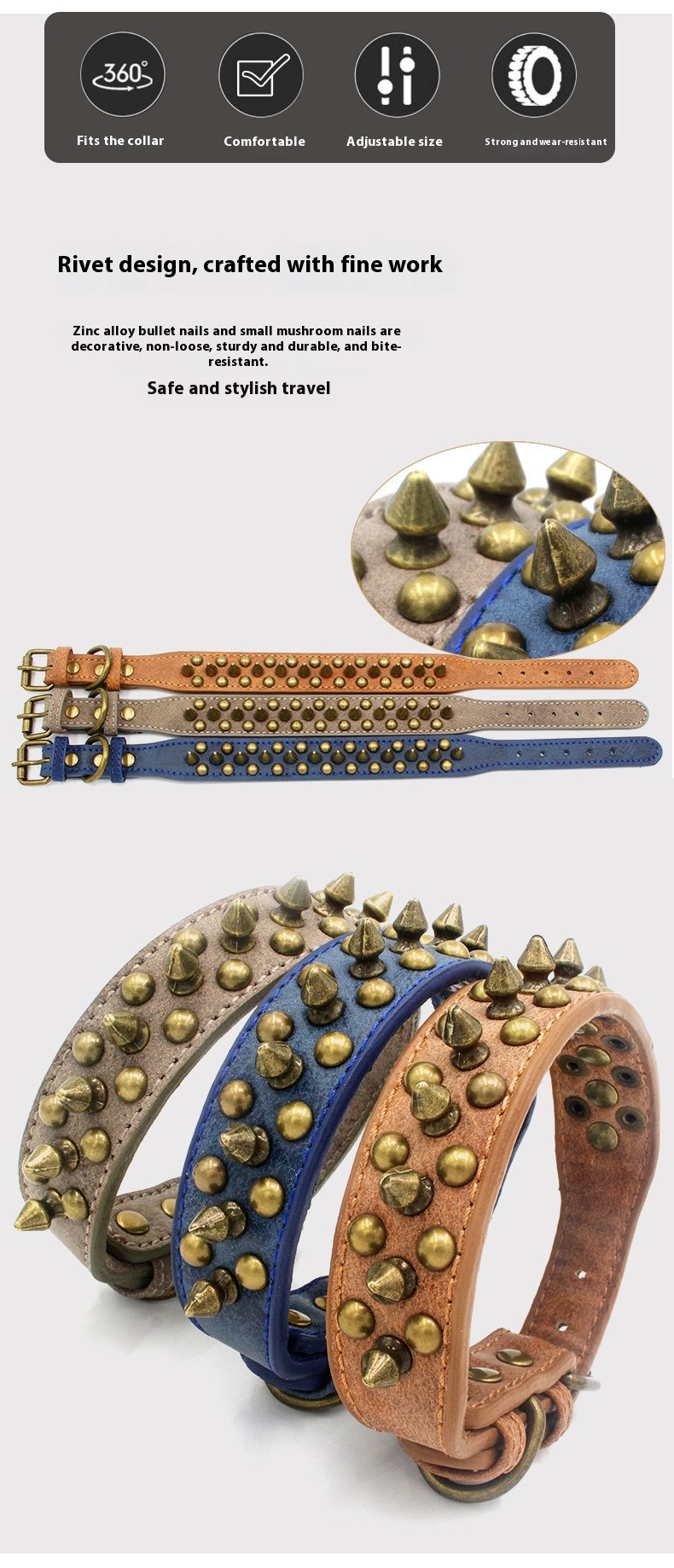 Be the first to review “Cross border pet collar retro anti bite rivet punk style dog collar sofa leather medium large dog traction collar”