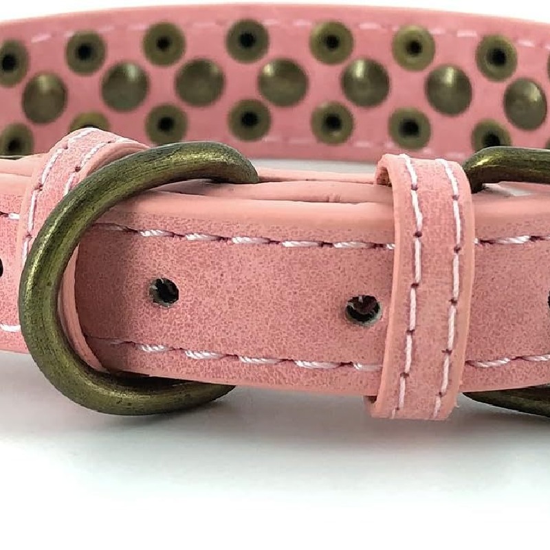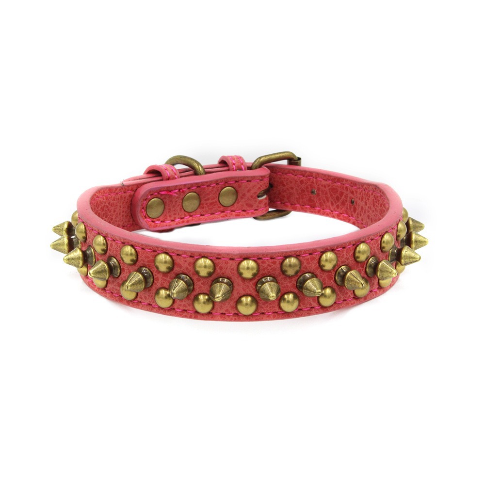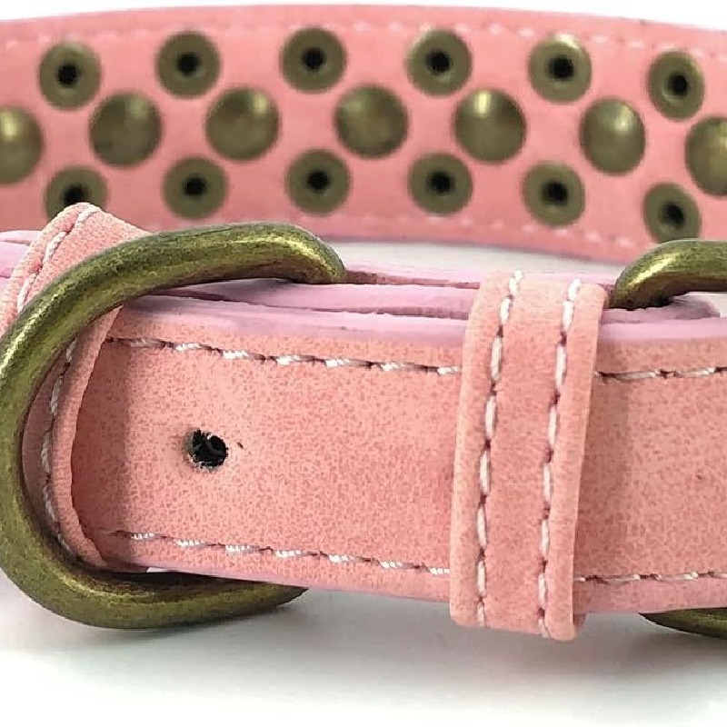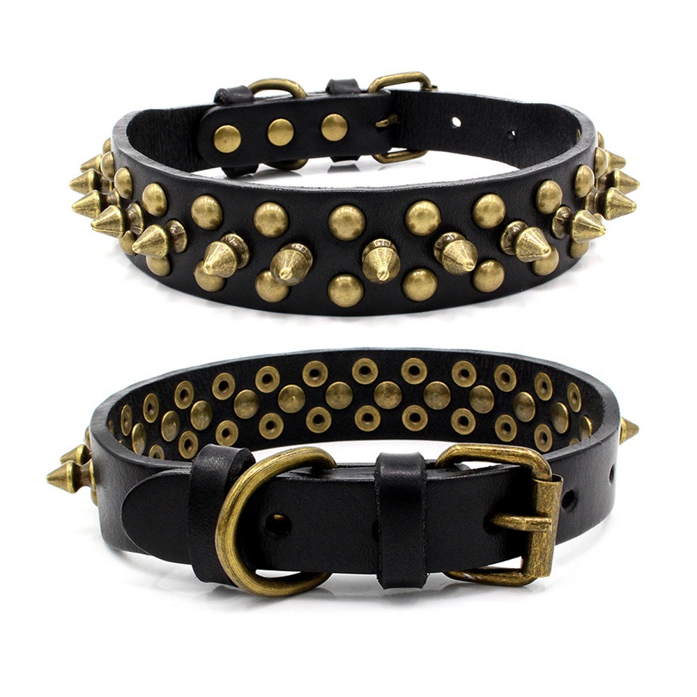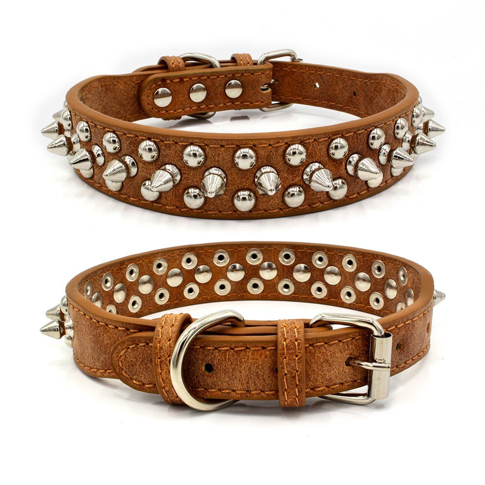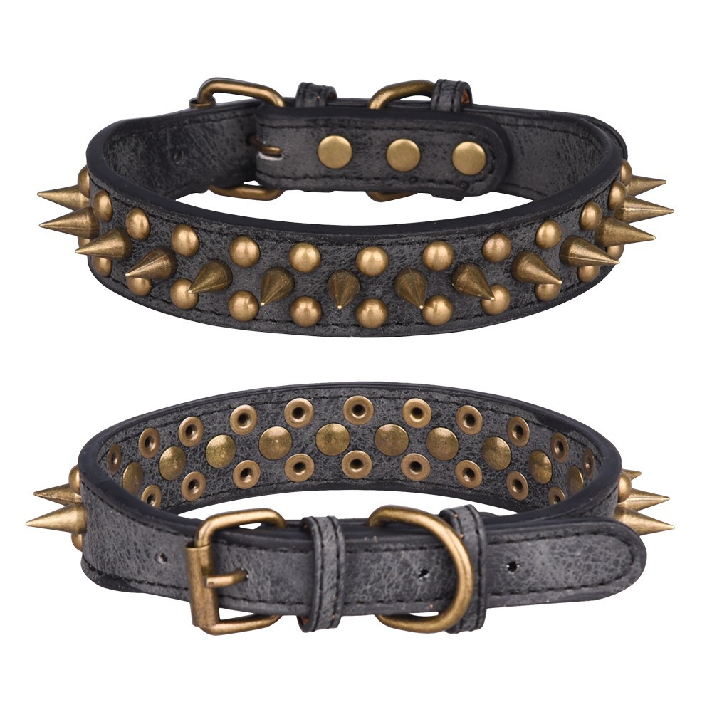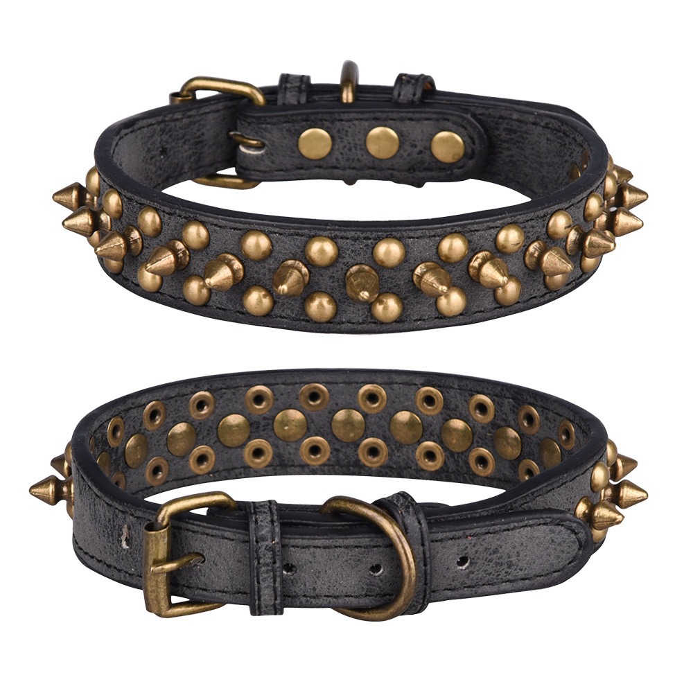 Cross border pet collar retro anti bite rivet punk style dog collar sofa leather medium large dog traction collar