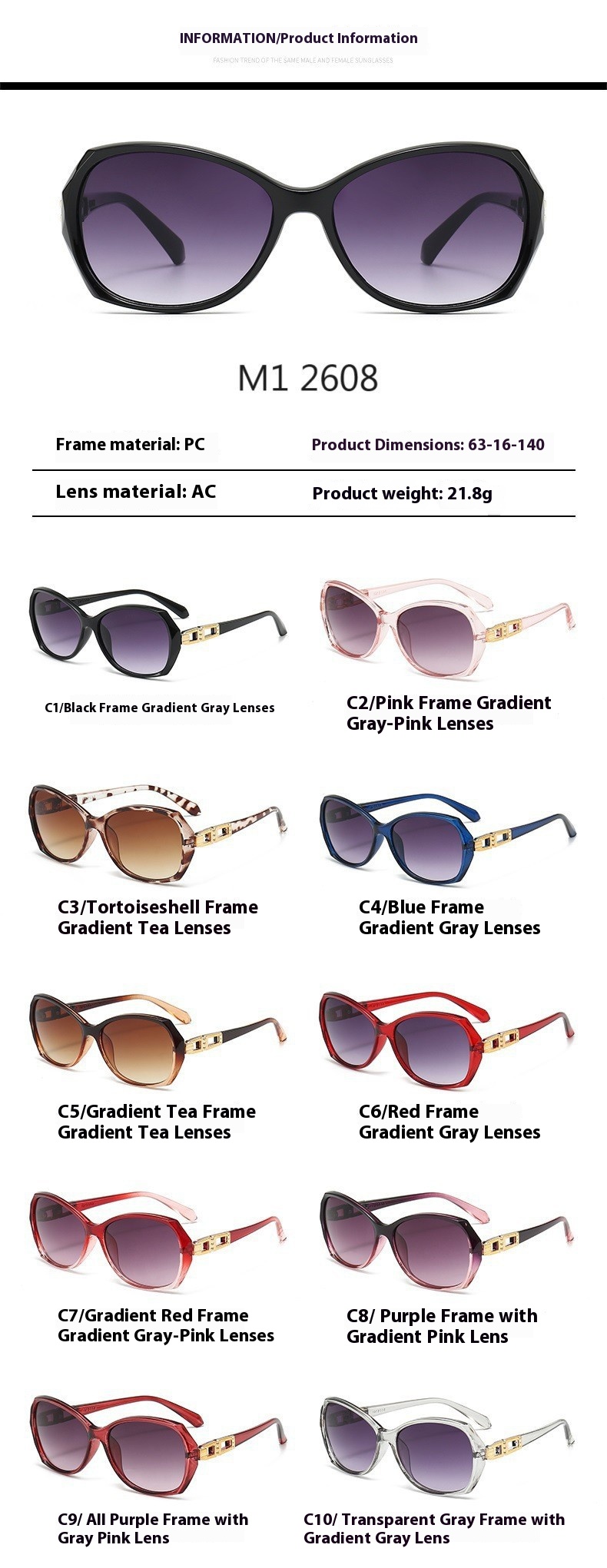 | Color | Gradient red frame double gray piece, Black frame double gray film, Gradient tea frame double tea slices, Transparent gray frame double gray piece, Transparent pink frame double gray piece, Gradient purple frame double gray piece |