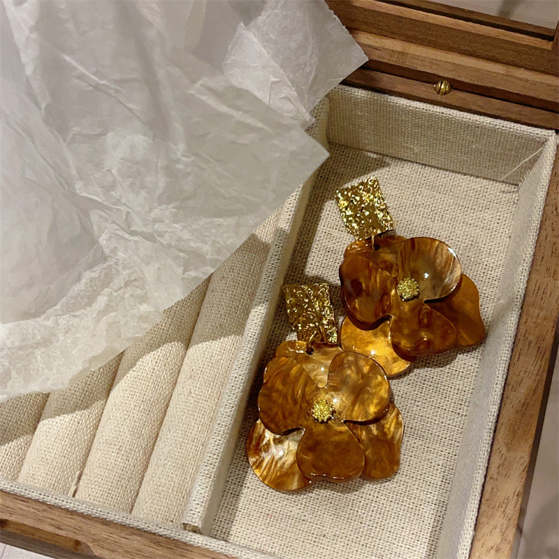 Be the first to review “Niche design sense Gardenia white coffee French retro flower earrings niche exaggerated petal temperament ear jewelry”