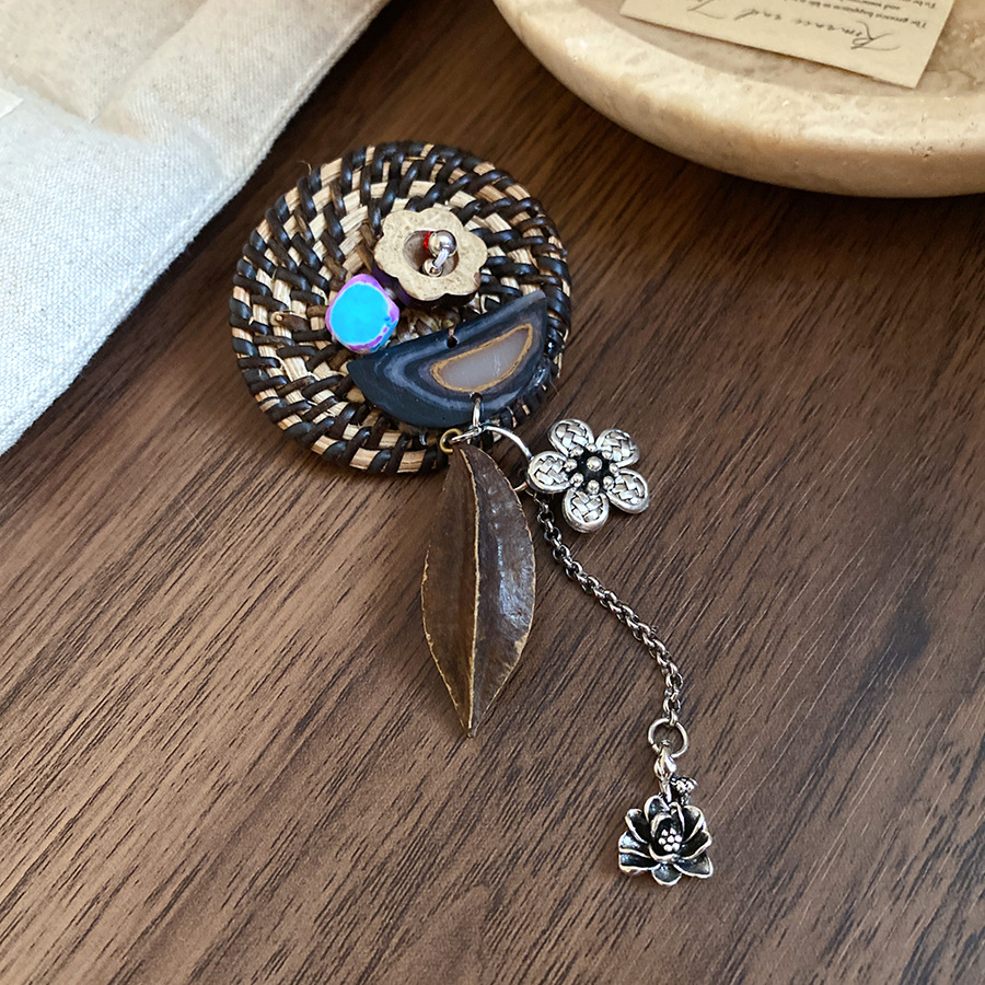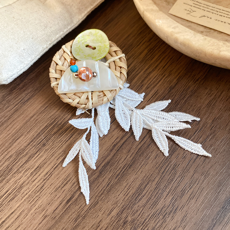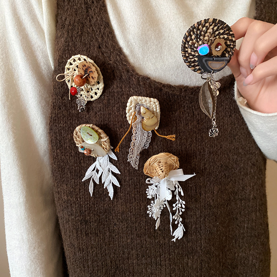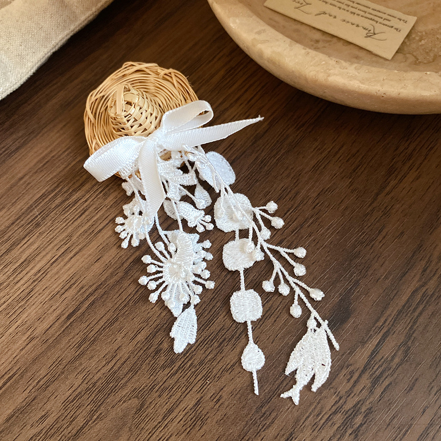 Vine woven hollow flower bow tassel brooch, fresh and sweet vacation style, chest flower, niche high-end accessory for women