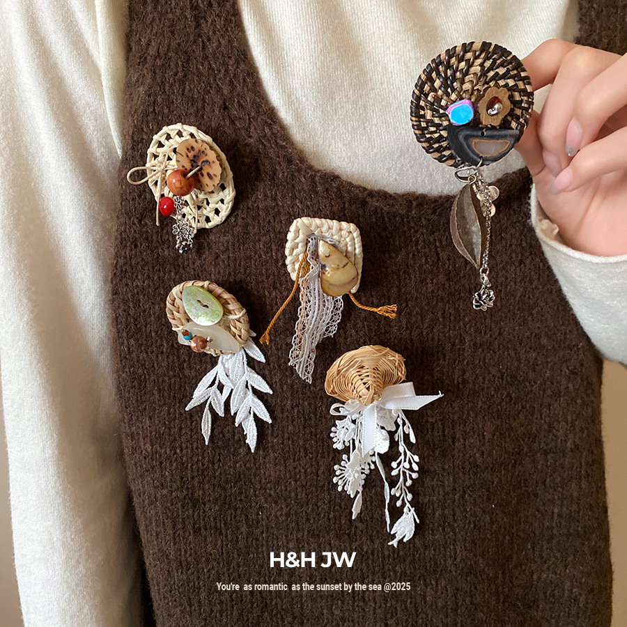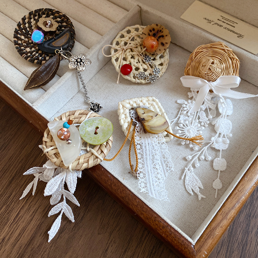 Be the first to review “Vine woven hollow flower bow tassel brooch, fresh and sweet vacation style, chest flower, niche high-end accessory for women”